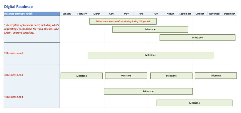 An optional extra depending on the complexity of your system or user types/permissions, producing a Digital Roadmap could be an essential step in order for multiple stakeholders to understand the vision and direction of your proposed LMS.
