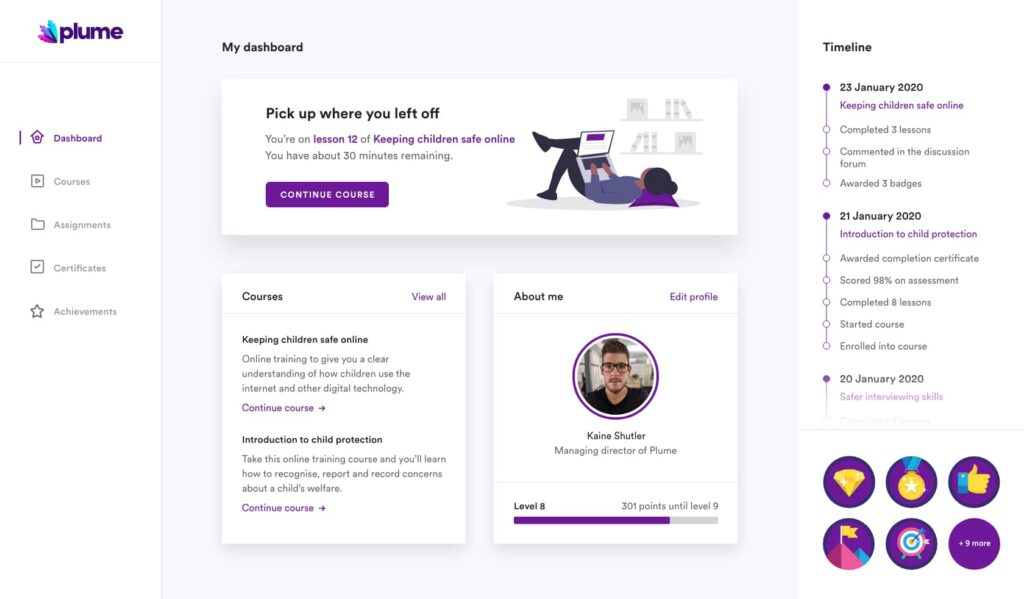 Kaine Shutler is the founder and managing director of Plume, a UK-based agency specialising in custom learning technology. With 14 years of experience, Kaine has established expertise in Learning Management Systems, UI/UX design, and scalability, working with clients including Google and training businesses across multiple sectors.