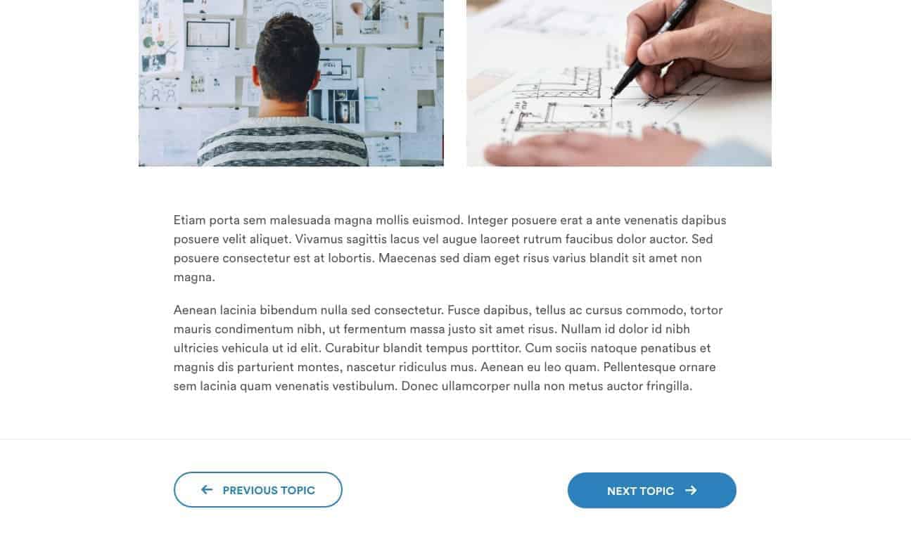 Of course, it’s still important to be able to navigate through the topics within a lesson. In my e-learning design, the user can progress through topics using the navigation at the bottom of each topic.