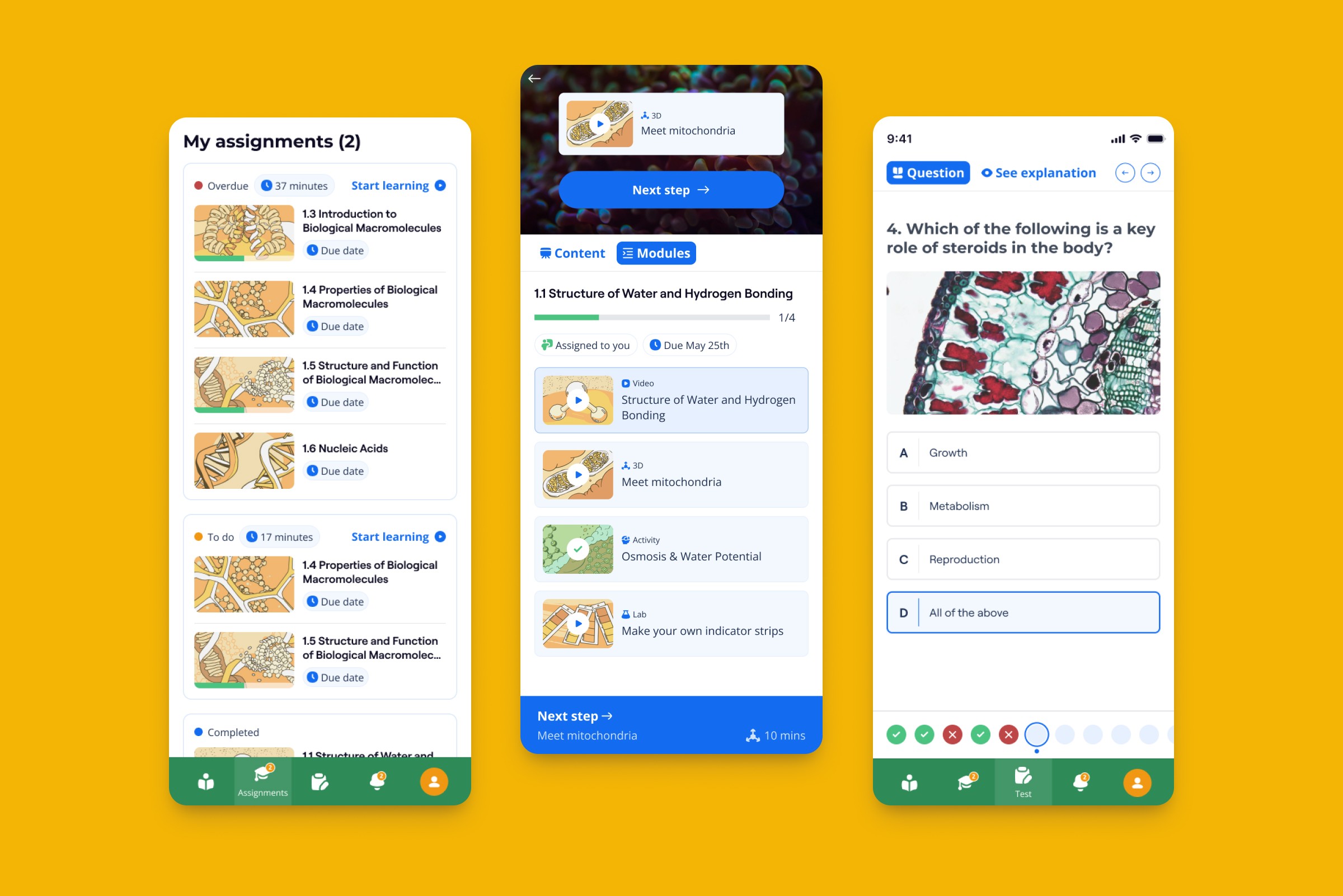 Enhanced user experience and engagement: We focused on creating a visually appealing and intuitive experience for students. The platform was designed to be not just functional, but genuinely fun to use. This includes clear navigation, progress tracking, and interactive content formats like 3D models that keep students motivated and engaged, even when they are learning outside of a structured classroom setting. A highly engaging student experience is critical for maintaining high retention rates and encouraging organic, self-driven adoption.