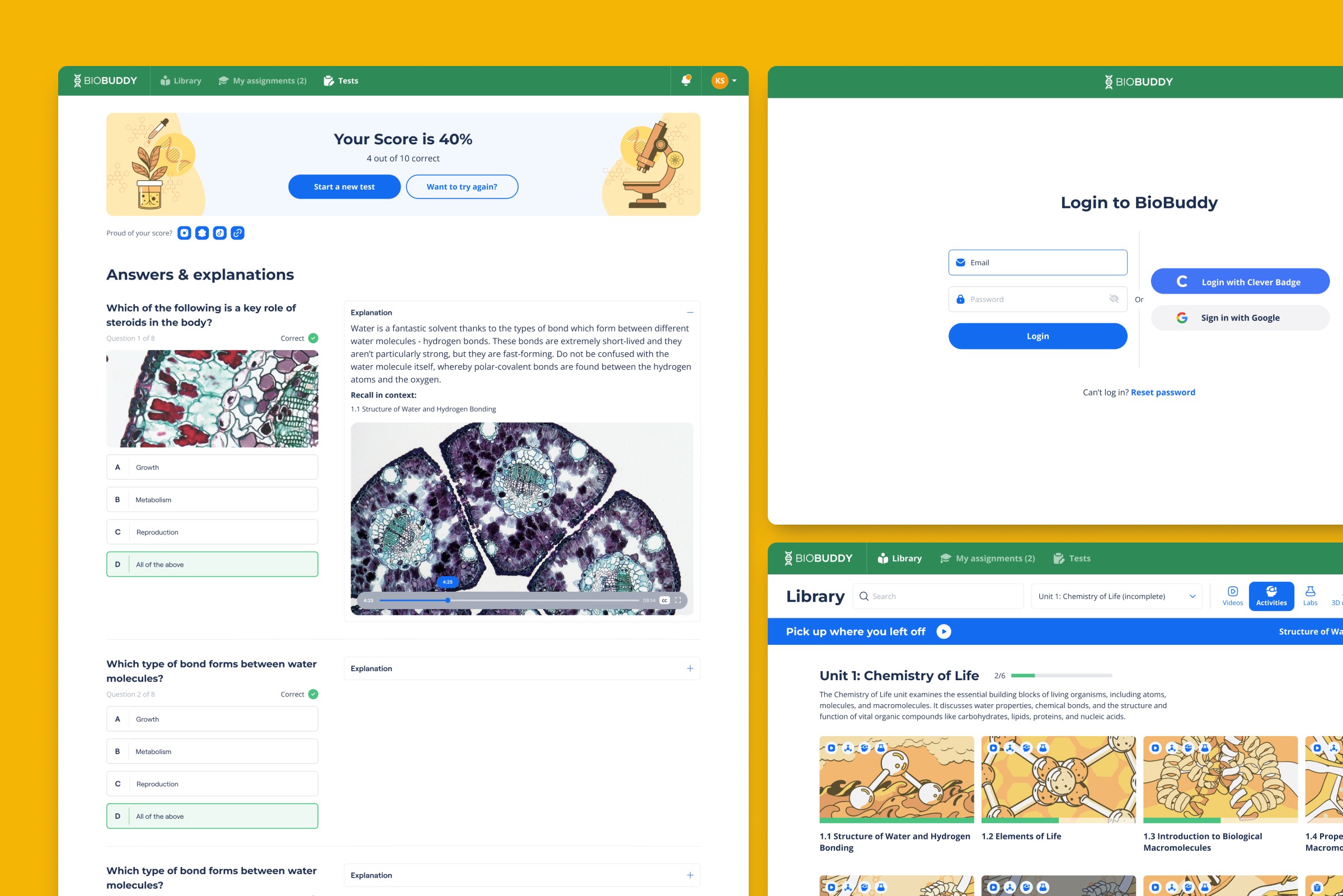 While the Google Classroom integration was a important for teachers, the core of our work was the development of BioBuddy's new, custom-built Learning Management System (LMS), with its own engaging student experience.
