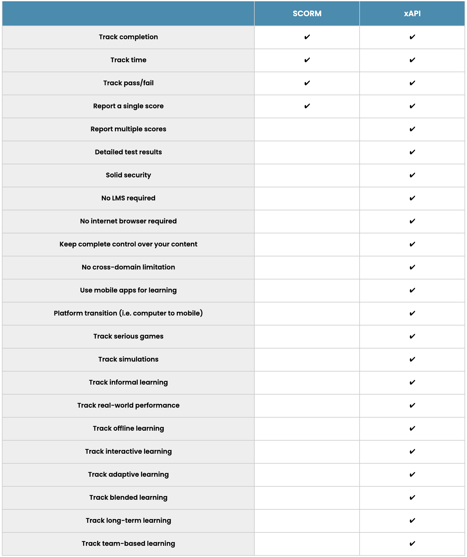 Differences between SCORM and xAPI