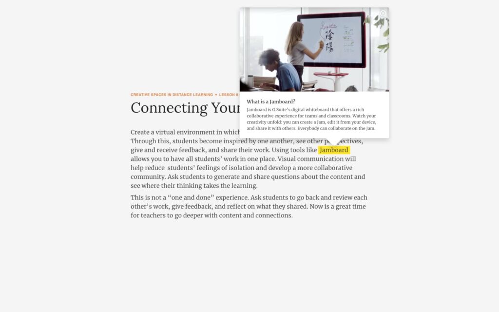 Regarded as one of the ‘cooler’ features we can build for our clients, contextual comments or contextual definitions, are those that are embedded within the learning material which improves engagement and understanding of the material without the need to leave the page or platform. With contextual comments students can spark conversations, share concepts and triggers social learning, while contextual definitions source these from a dictionary or webpage to provide clarity to the text.