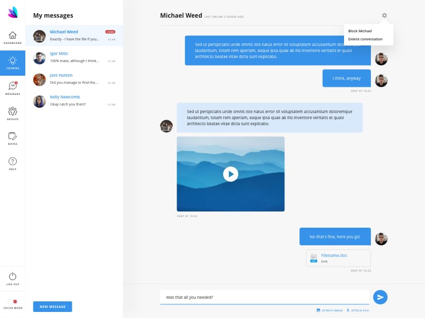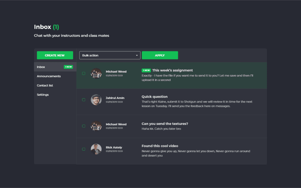 Whether you need to ensure that students can message tutors, or you just want to ensure no one is using their personal emails for communication, an internal messaging system is the way to go. By keeping all your communications within the platform you can offer an integrated and secure experience like no other!