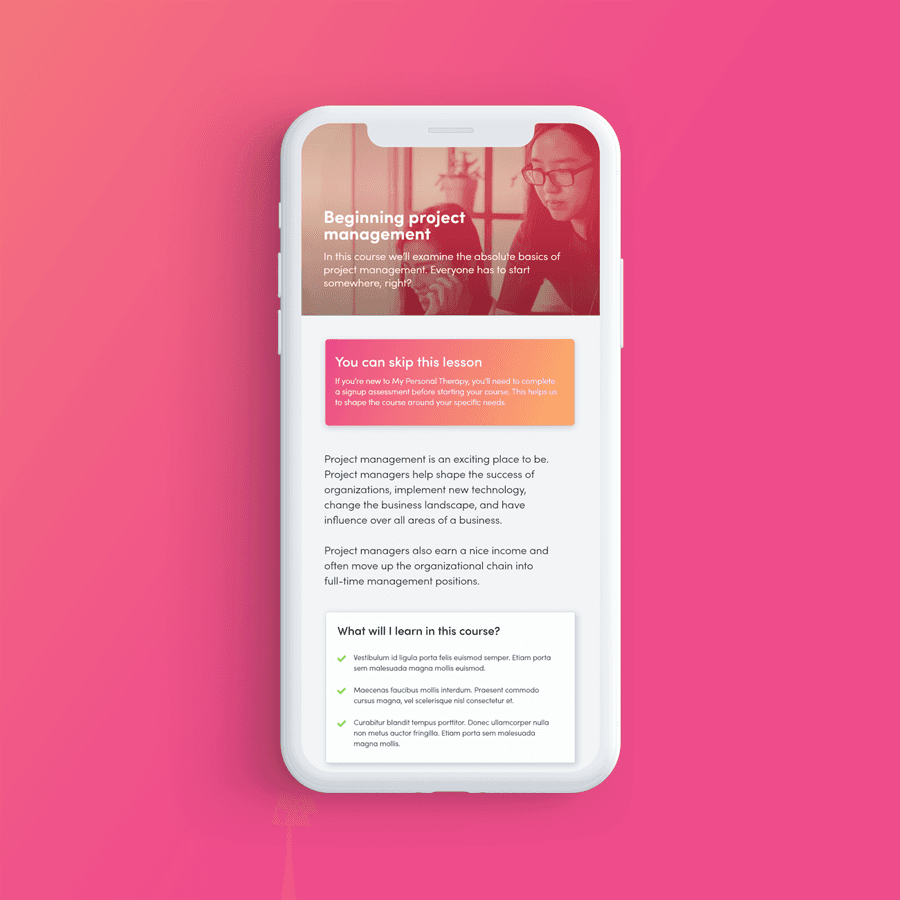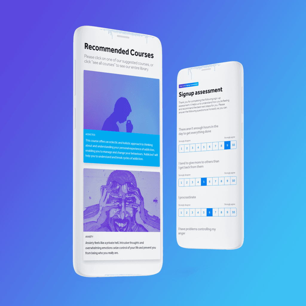 Pre-course assessments can also be used in other ways. My Personal Therapy used pre-course assessments to understand more about their client’s mental health and needs in order to recommend suitable practitioners who could help them.